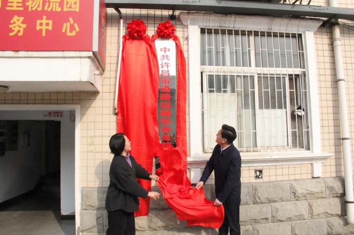 市民政局科长孙伟鹏、中国道路运输协会副会长陈宇飞共同为许昌市道路运输协会揭牌。