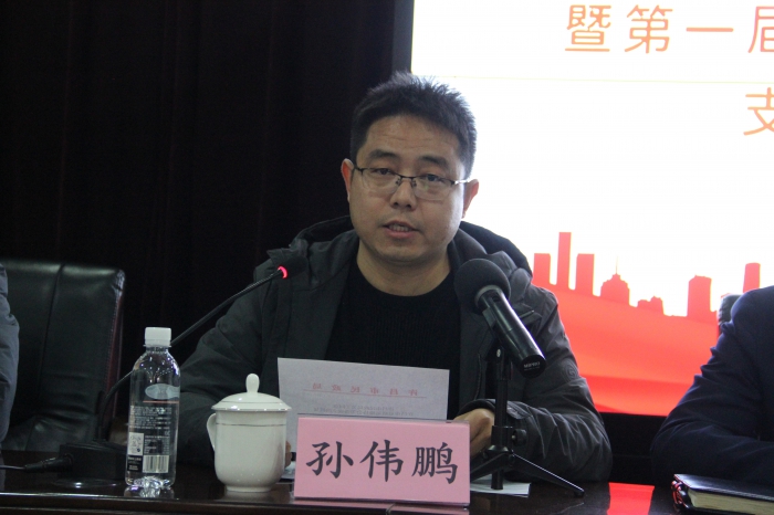 许昌市民政局社会组织管理和慈善事业促进科科长孙伟鹏宣读《关于成立许昌市道路运输协会的批复文件》。