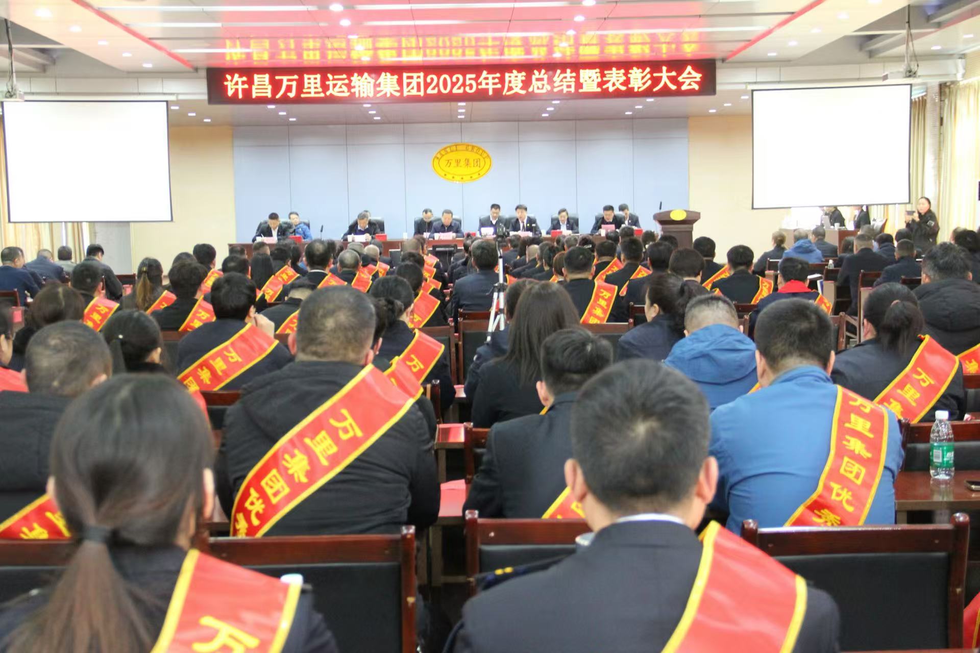 2月11日,许昌万里运输集团召开2025年度总结暨表彰大会,集团党委书记、董事长、总裁陈宇飞携公司领导班子及中层管理者和优秀共产党员代表、优秀员工代表等参会。回首奋进足迹、表彰卓越典范、擘画发展新图,携手开启高质量发展崭新篇章。特邀许昌市交通运输局党组书记、局长张军旺出席大会。集团副董事长王柏强主持会议。